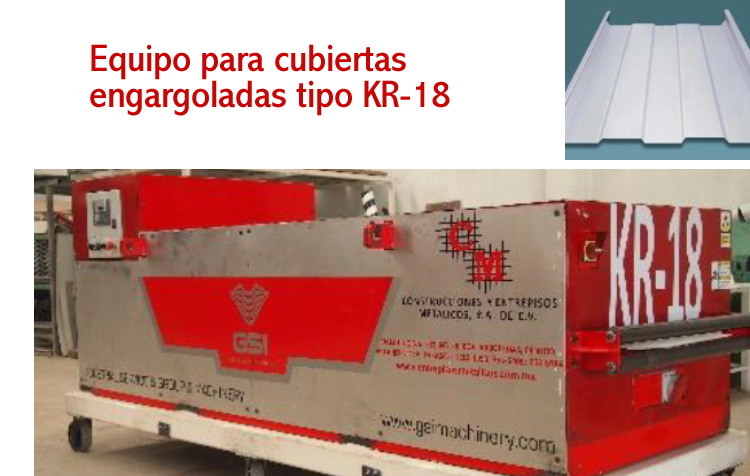 Maquina portátil para la fabricación de lámina kr 18 sistema de cubierta a base de perfil estructural fabricado en sitio con traslape lateral engargolable y sujeto a la estructura mediante clips fijos o móviles, se fabrican en varios calibres dependiendo de las condiciones de la obra, estas cubiertas ofrecen gran ventaja ya que por su proceso de engargolado son 100 herméticas evitando filtraciones, lo que las hace más rápidas y económicas.